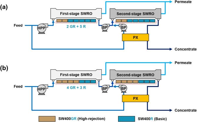 In a one-stage RO system, the feed water enters the RO system as one stream and exits the RO as either concentrate or permeate water.